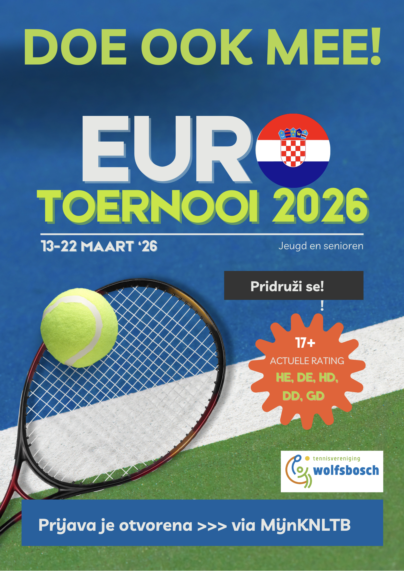 Schrijf je in voor dit toernooi met als thema Hrvatska (Kroatie) via deze link Euro Toernooi Senior 2026